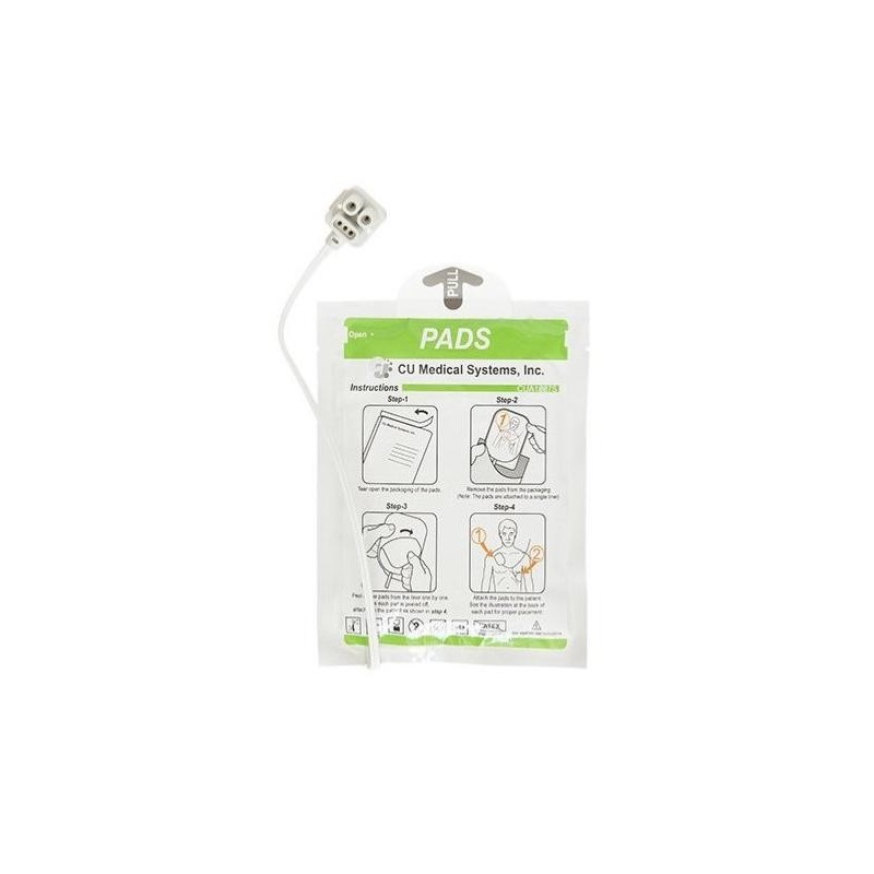 Elles sont auto-adhésives et pré-gélifiées. La connexion directe aux câbles permet un gain de temps crucial durant la réanimation. L'emballage comporte des pictogrammes clairs pour guider l'utilisateur dans la mise en place correcte des électrodes sur la victime.