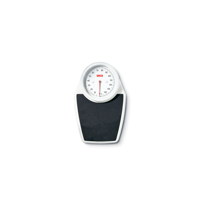 Le pèse-personne Seca 761 affiche un résultat jusqu'à 150 kg clair et lisible sur son large cadran rond à aiguille. Robuste et précis, il est homologué pour une utilisation professionnelle et un diagnostic médical dans les hôpitaux, cabinets médicaux, centres de soins.
