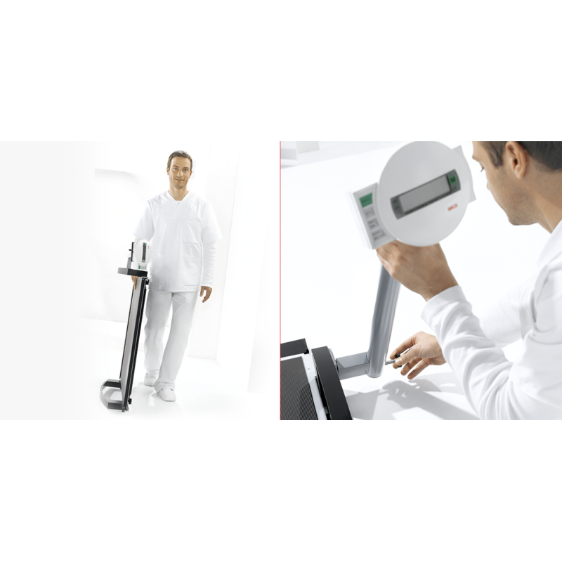 La plateforme SECA 665 est la solution de référence pour le pesage des patients en fauteuil roulant ou des personnes à forte corpulence. Alliant une haute capacité de 300 kg à une ergonomie pensée pour la mobilité, elle s'intègre parfaitement dans les hôpitaux, centres de rééducation et soins à domicile.