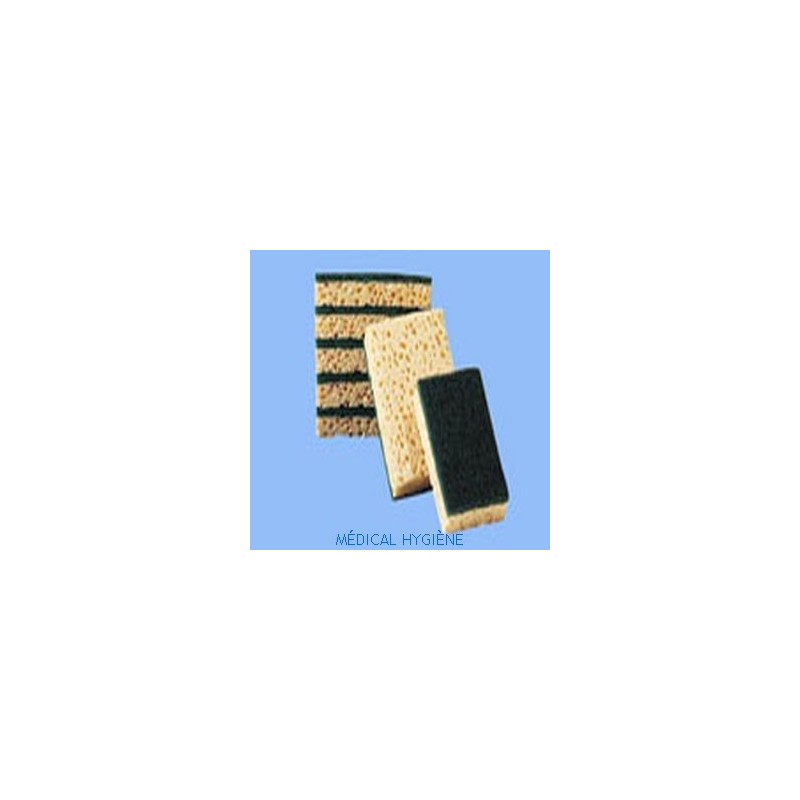 Éponge double face usage professionnel pour nettoyage polyvalent. Face abrasive récurer salissures incrustées, face éponge végétale absorption/performances classiques.