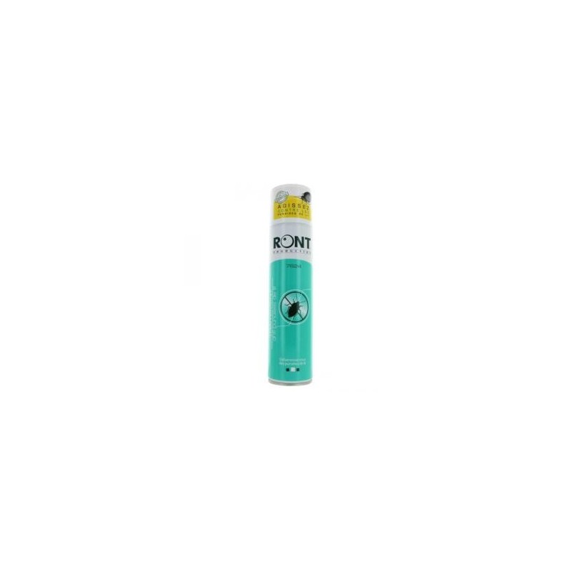 Cet aérosol anti-punaises des laboratoires Ront permet d'éliminer les punaises de lit (parasite piquant pendant le sommeil, causant démangeaisons). Se cache dans fentes de planchers, plinthes, matelas. Le traitement Ront a un effet immédiat et rémanent plusieurs semaines (punaises vivent 10 mois).