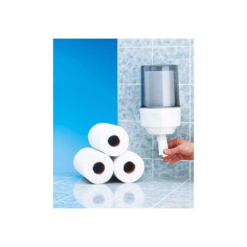 Essuie-tout compact mini ouate 100 % pure ouate blanche, 2 plis. Pratique et économique, idéal pour l'essuyage des surfaces, des mains et des instruments. 4 fois plus long qu'un essuie-tout classique, très doux, dévidage central possible. Mini bobines de 200 formats prédécoupés tous les 30 cm, agréé contact alimentaire.