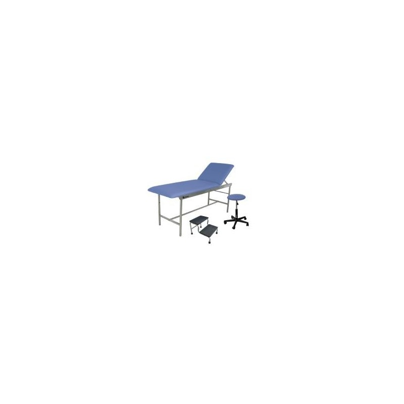 PACK DIVAN D EXAMEN+TABOURET+ MARCHEPIED 2 MARCHES INOX bleu