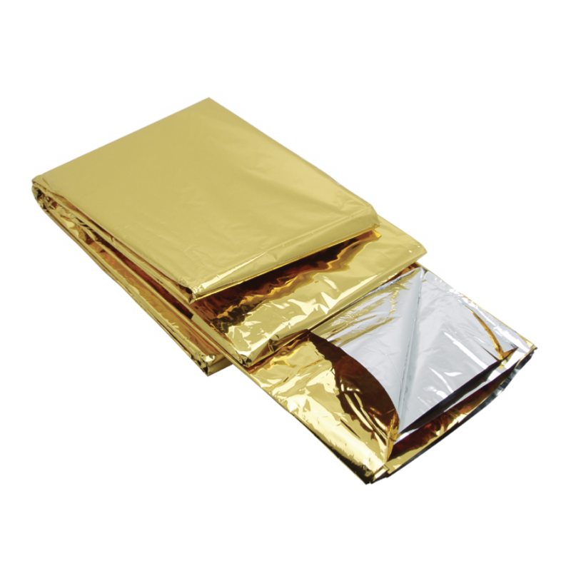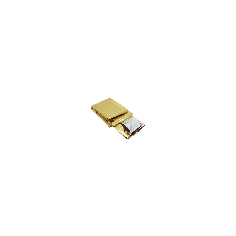 Couverture de Survie avec face couleur argent et face couleur or 210 x 160 cm. Indispensable dans les situations d'urgence.