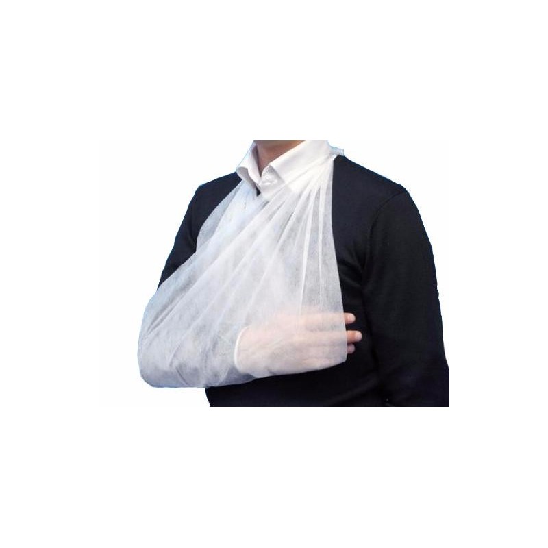 Permet de maintenir un membre blessé ou fracturé, afin de limiter la douleur et le traumatisme. Non tissé, 30g/ m², 96 x 96 x 136 cm.