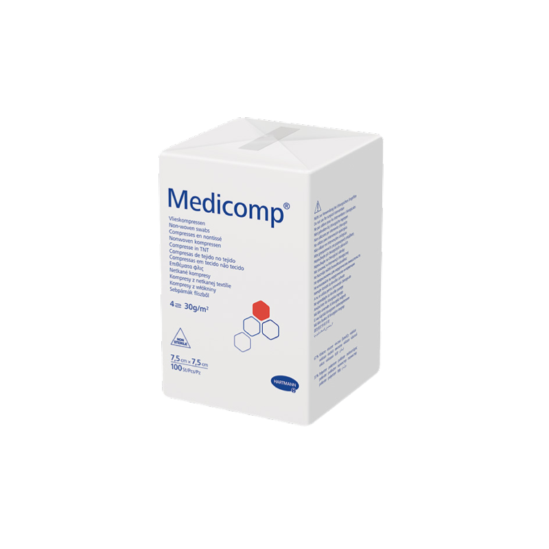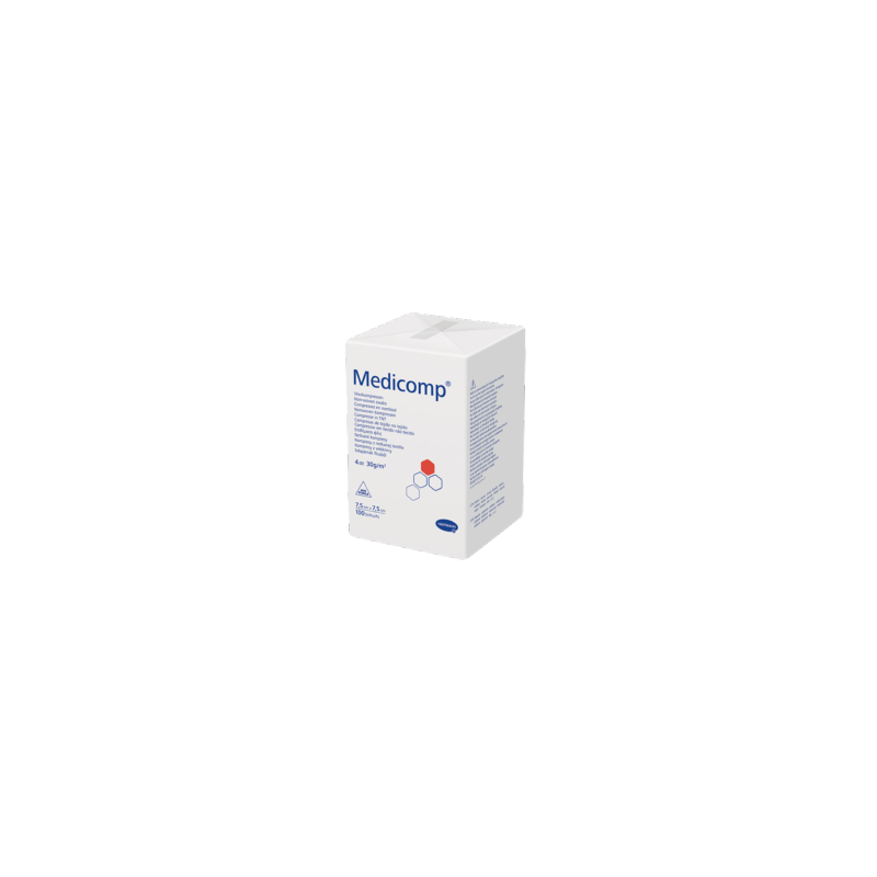 Compresses Medicomp non tissées non stériles pour traitement, nettoyage, recouvrement légères lésions cutanées. Soins plaies non aseptiques, préparation plateaux soins, interventions hospitalières/ambulatoires. Très douces excellente qualité, absorption optimale.