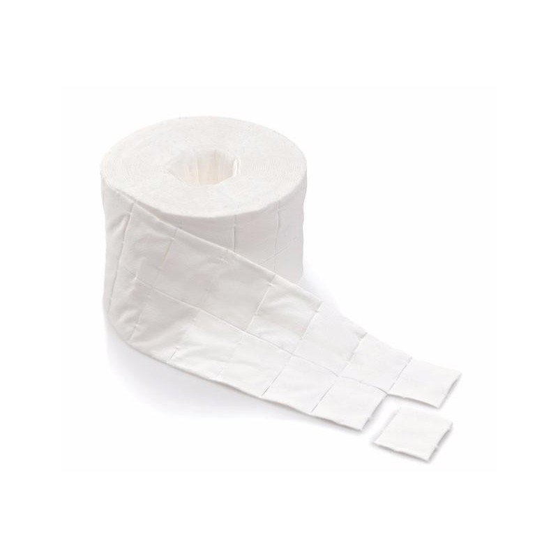 Dimensions 4 x 5 cm, bords hermétiques (non pelucheux/déchirant), coussinet stable sans poussière. Très absorbant/doux. Simple/économique pour cabinets/centres soins. Rouleau 500 pièces.