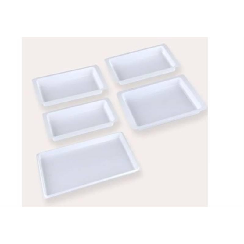Plateaux dentaires jetables simples alvéolés 20x10 cm, idéaux pour soins patients. Format compact sans compartiments pour rangement instruments.