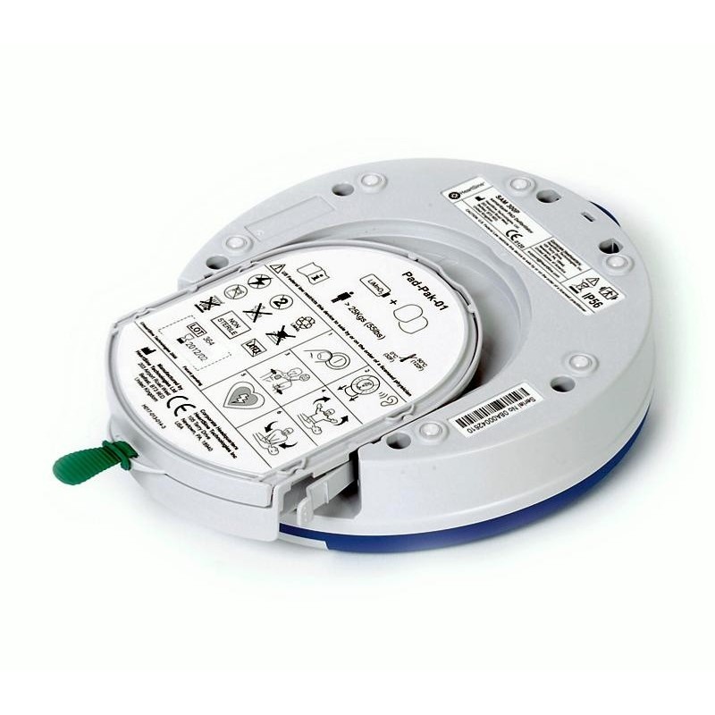 PACK COMPLET DAE HEARTSINE SAMARITAN PAD 500P Défibrillateur semi-automatique Très simple d'utilisation : instructions vocales et visuelles Accompagnement du massage cardiaque avec des instructions vocales Utilisable par des personnes non formées Fonctionnement à deux boutons Maintenance facile : cassette commune batterie / électrode + auto-diagnostique hebdomadaire Très léger et très résistant Garantie de 8 ans Le défibrillateur Samaritan PAD 500P est un défibrillateur semi-automatique (aussi appelé DSA) de la marque HeartSine. Ce DSA est extrêmement simple d'utilisation, et est spécialement conçu pour des personnes sans aucune formation. Lors d'un arrêt cardiaque chaque minute est précieuse, c'est pour cela que depuis le décret du 4 Mai 2007, toute personne est autorisée à utiliser un défibrillateur cardiaque pour secourir une victime d'arrêt cardiorespiratoire. Simplicité Ce défibrillateur semi-automatique permet donc aux personnes sans formation de réaliser une réanimation simple. Le DSA donne des instructions claires, simples, et intuitives de façon vocale et visuelle. Il dispose aussi d'un métronome donnant le rythme pour le massage cardiaque. Sa plus grande force est son accompagnement tout au long du processus de réanimation, et ce même dans les environnements bruyants. Tout au long du massage cardiaque, le défibrillateur PAD 500P calcule l'efficacité de la réanimation cardiopulmonaire. Il donne donc des instructions précises pour améliorer le massage cardiaque en temps réel, tel que : plus vite, plus fort, plus lentement, etc. Il fonctionne simplement avec deux boutons : MARCHE/ARRÊT et un bouton de choc. Sa conception semi-automatique nécessite une validation humaine pour délivrer le choc. Le bon positionnement des électrodes est indiqué à l'aide d'un pictogramme sur le défibrillateur. Maintenance facile Pour plus de facilité, les électrodes ainsi que la batterie font partie d'un système commun de PAD-PAK. Ils sont combinés au sein d'une seule et même cassette à usage unique qui possède une durée de vie de 4 ans. Le PAD-PAK possède donc une date de péremption unique, ce qui facilite grandement la maintenance. Il existe également un PAD-PAK pédiatrique pour les enfants de moins de 8 ans ou moins de 25 kg. Le Samaritan PAD 500P est conçu pour être utilisé dans les lieux publics (écoles, clubs sportifs, communes). Il effectue chaque semaine un auto-diagnostic complet de façon autonome. Son état est indiqué par un voyant clignotant et un signal sonore. Solidité et performance Le défibrillateur est très léger (à peine 1kg) et livré avec sa sacoche de transport. Il bénéficie d'une certification IP56, offrant l'une des protections les plus élevées de l'industrie contre la poussière et l'eau. Il utilise la technologie biphasique SCOPE, une onde de faible énergie qui s'adapte automatiquement à la morphologie du patient pour une efficacité optimale. Contenu du pack : 1 Défibrillateur Pad 500P 1 housse de transport 1 armoire d'intérieur blanc 1 PadPak (Adulte) 1 set de 5 signalisations 1 trousse de secours pour la réanimation La garantie du défibrillateur Pad 500P est de 8 ans. Caractéristiques Techniques Dimensions : 20 cm x 18.4 cm x 4.8 cm Poids : 1.1 kg avec Padpak (électrodes + batterie) Type de DAE : Semi-automatique avec assistance à la réanimation Niveau d'énergie : 1er choc 150J, 2ème choc 150J et à partir du 3ème choc 200J Durée de vie du Padpak : 4 ans Étanchéité : Certification IP56 Vidéo de démonstration Mentions Obligatoires : Dénomination : PACK Défibrillateur Semi-Automatique HeartSine Samaritan 500P Destination : Appareil destiné à délivrer un choc électrique en cas d'arrêt cardiaque Fabricant : DEFIBRION / HeartSine Instructions : Lire attentivement la notice. En cas de doute, consultez un professionnel de santé.