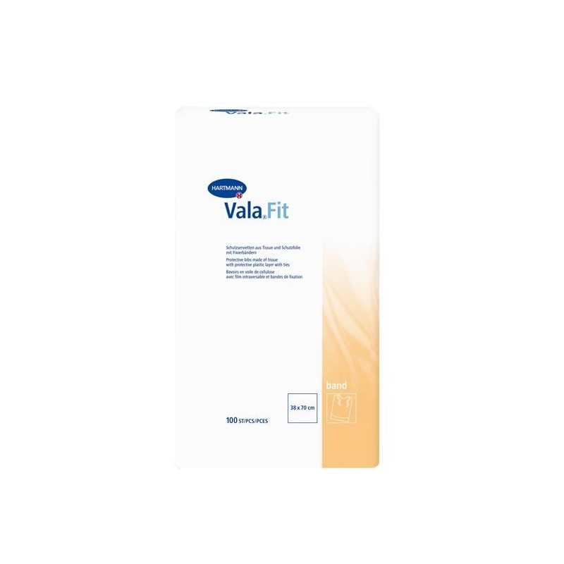 Fabricant : Hartmann. Référence : 992262. VALA FIT Band bavoir de protection utilisé pour la protection du patient lors des repas ou lors des soins médicaux et dentaires.