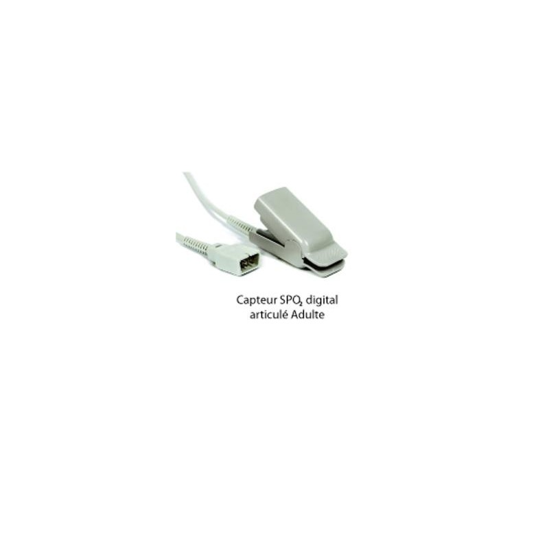 Capteur SpO2 digital articulé Adulte - 1 m. Ce capteur est interchangeable, très simple à fixer.